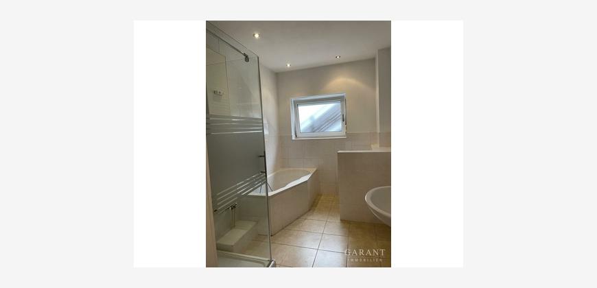Das Badezimmer mit Waschmaschinenanschluss bietet sowohl eine Dusche als auch eine Badewanne. Dank des Tageslichtfensters können Sie das Bad in natürlichem Licht genießen, was für eine angenehme Wohlfühlatmosphäre sorgt.