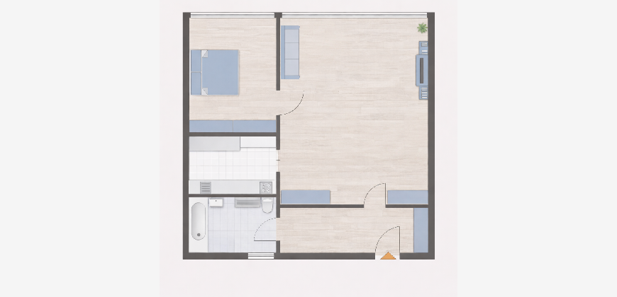 Die Wohnung verfügt über eine funktionale Ausstattung inklusive einer Einbauküche und einem Badezimmer. Helle Räume und ein klarer Grundriss sorgen für eine angenehme Atmosphäre.