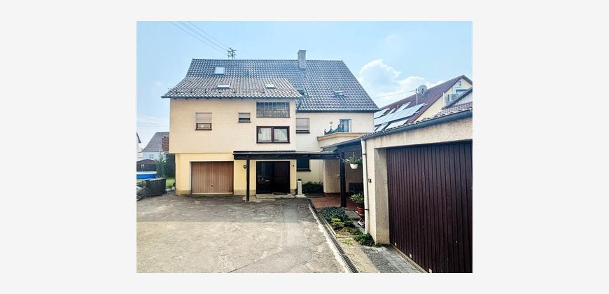 Zum Verkauf steht ein gepflegtes 3-Familienhaus, das etwa im Jahr 1980 auf einem ca. 490 m² großen Grundstück errichtet wurde. Zur Immobilie gehören eine nebenstehende Doppelgarage, eine im Haus integrierte Einzelgarage sowie zwei Außenstellplätze, die im Kaufpreis enthalten sind.