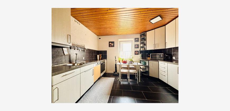 Das Haus umfasst drei Wohneinheiten mit folgenden Wohnflächen: ca. 55 m² im Erdgeschoss, ca. 100 m² im Obergeschoss und ca. 90 m² im Dachgeschoss. In der Dachgeschosswohnung wurde der Spitzboden zusätzlich mit zwei Zimmern wohnlich ausgebaut, wodurch sich die nutzbare Fläche dort um rund 30 m² erweitert.