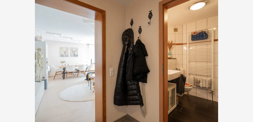 Auf rund 179 m² Wohnfläche, verteilt auf zwei eigenständige Einheiten, entfaltet sich ein Raum voller Perspektiven. Ob als Mehrgenerationenhaus, als Rückzugsort für zwei Familien oder als Kapitalanlage mit bestehenden Mieteinnahmen – hier verschmelzen Flexibilität, Beständigkeit und Lebensqualität auf harmonische Weise. Der gemeinschaftliche Flur verbindet beide Einheiten und öffnet den Blick in den Garten, das grüne Herz des Anwesens. Von hier aus gelangt man auch zur überdachten Terrasse der ersten Einheit, ein stiller Rückzugsort im Grünen, der Privatsphäre mit einem Hauch von Exklusivität vereint.