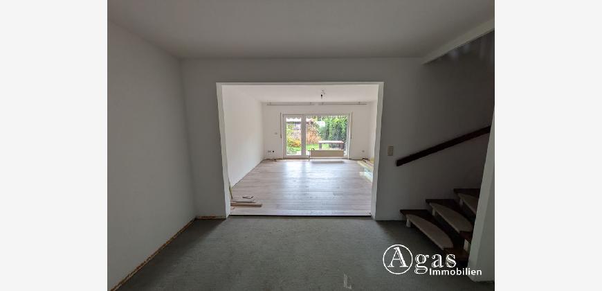 Geradeaus führt der Flur weiter direkt in das Herzstück des Hauses. Hier erwartet Sie ein großzügiges Wohnzimmer, das durch seine helle und einladende Atmosphäre besticht. Von hier aus gelangen Sie auf die Terrasse und in den kleinen Garten, die an warmen Tagen zu erholsamen Stunden im Freien einladen.