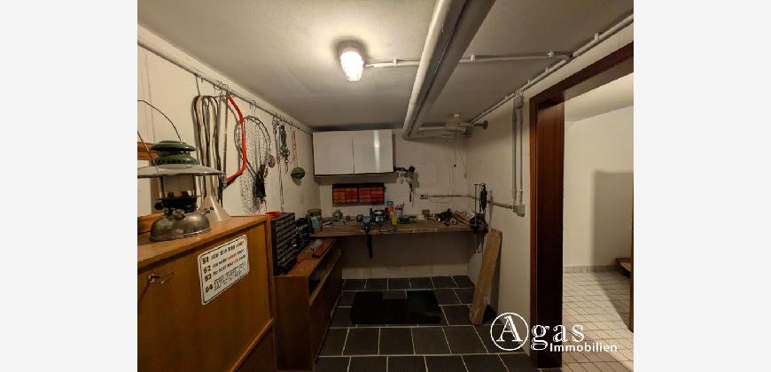 Der großzügige Keller bietet vielfältige Nutzungsmöglichkeiten. Neben reichlich Stauraum steht Ihnen hier ein zusätzliches Zimmer zur Verfügung, das sich ideal als Hobby- oder Arbeitszimmer eignet. Außerdem gibt es einen praktischen Werkraum, der genügend Platz für Heimwerkerprojekte oder Aufbewahrung bietet.