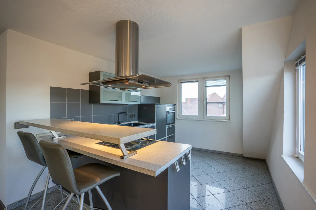 Willkommen in Ihrem potenziellen neuen Zuhause in Waldfeucht – einer charmanten Etagenwohnung, die ideal für Singles, Paare oder als Kapitalanlage geeignet ist. Diese ansprechende Wohnung erstreckt sich über ca. 86 m² Wohnfläche und bietet Ihnen modernen Komfort gepaart mit behaglicher Atmosphäre. Das Gebäude wurde ursprünglich 1967 als Bungalow gebaut und ca. 1986 um ein Dachgeschoss aufgestockt, in dem sich heute die angebotene Wohnung befindet. Der offene Wohnbereich ist das Herzstück der Wohnung und bietet viel Platz für Ihre individuellen Gestaltungsideen. Für wohlige Wärme sorgt der Pelletofen der Marke Palazzetti, der die Hauptwärme liefert und daher die Heizungsanlage nur in seltenen Fällen benötigt wird. Ergänzend sorgt eine Split-Klimaanlage im Schlafzimmer für angenehme Temperaturen – sowohl zum Kühlen im Sommer als auch zum Wärmen in der Übergangszeit. Ein weiteres Highlight sind die zwei bifazialen Solarmodule am Balkon, jeweils mit 450 Watt Leistung inklusive Wechselrichter, die einen modernen Beitrag zur Energieeffizienz der Wohnung leisten. Der einladende Balkon lädt zu entspannten Stunden im Freien ein, während das geräumige Schlafzimmer erholsame Nächte und ausreichend Platz für Ihre persönlichen Bedürfnisse bietet. Das stilvolle Badezimmer rundet das attraktive Gesamtbild ab und lässt keine Wünsche offen. Diese Wohnung in Waldfeucht kombiniert komfortables, modernes Wohnen mit charaktervollem Ambiente – eine hervorragende Gelegenheit für alle, die ein Zuhause mit besonderem Flair suchen. Überzeugen Sie sich selbst und vereinbaren Sie noch heute einen Besichtigungstermin. Lassen Sie sich diese Chance nicht entgehen!