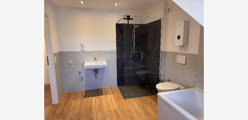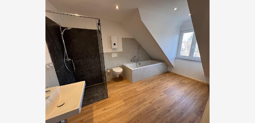 - Badezimmer mit Badewanne, separater Dusche und Fenster