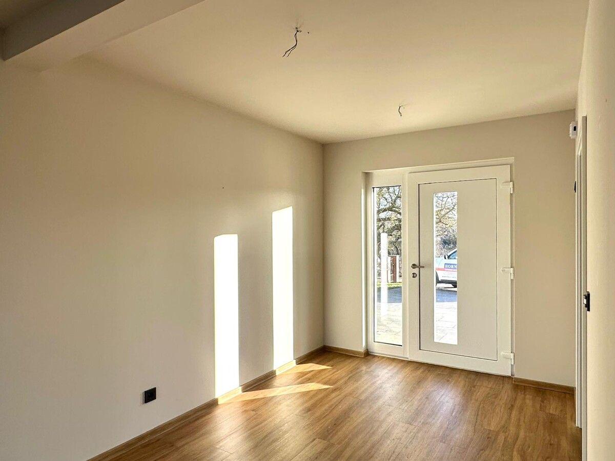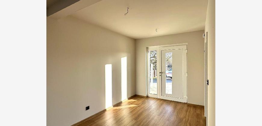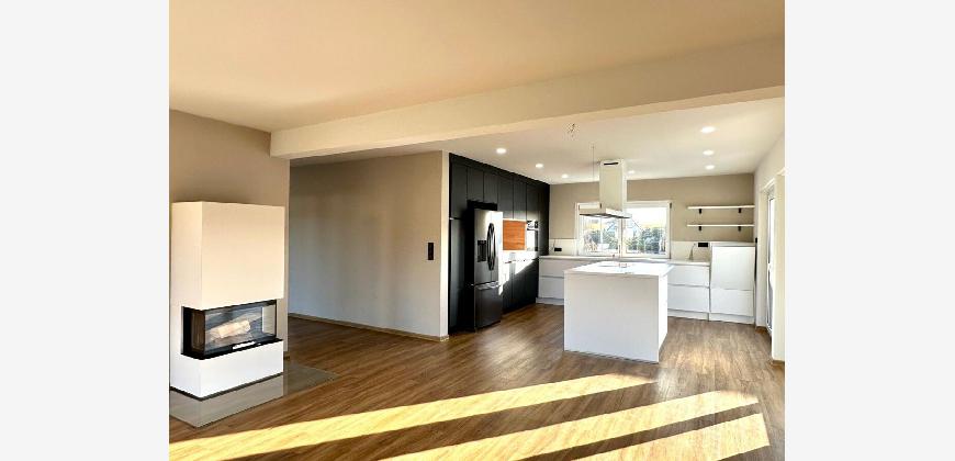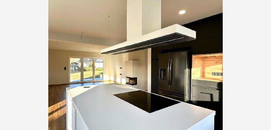 Vor dem Haus gibt es einen großen gepflasterten Bereich, zwei Garagen und einen Carport. Es ist ein repräsentatives Einfamilienhaus, welches sich besonders für die junge Familie eignet oder einfach für Menschen, die Großzügigkeit lieben und alles ebenerdig brauchen.