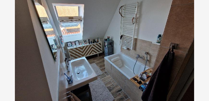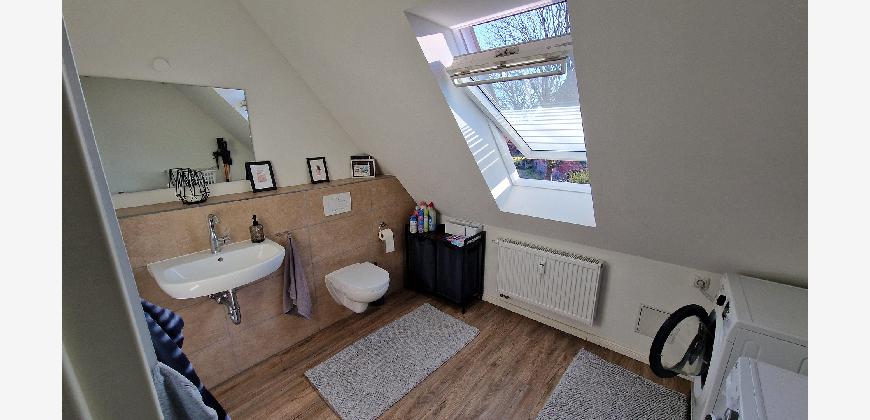 Die Wohnung verfügt über eine Einbauküche mit Kühl/Gefrierkombination sowie ein Badezimmer mit Dusche und Badewanne. 2 PKW Stellplätze, ein Gartenschuppen sowie eine Terrasse und Rasenfläche zur Nutzung und Gestaltung.