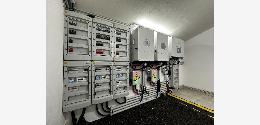 Ein zentrales Ausstattungsmerkmal ist die moderne Photovoltaik-Gesamtanlage (84kWp) mit mehreren dreiphasigen Hybridwechselrichtern des Herstellers Deye. Die Stromversorgung für die Mieter erfolgt über ein Mieterstrom-Abrechnungsmodell.