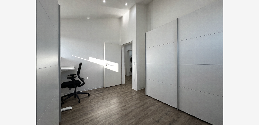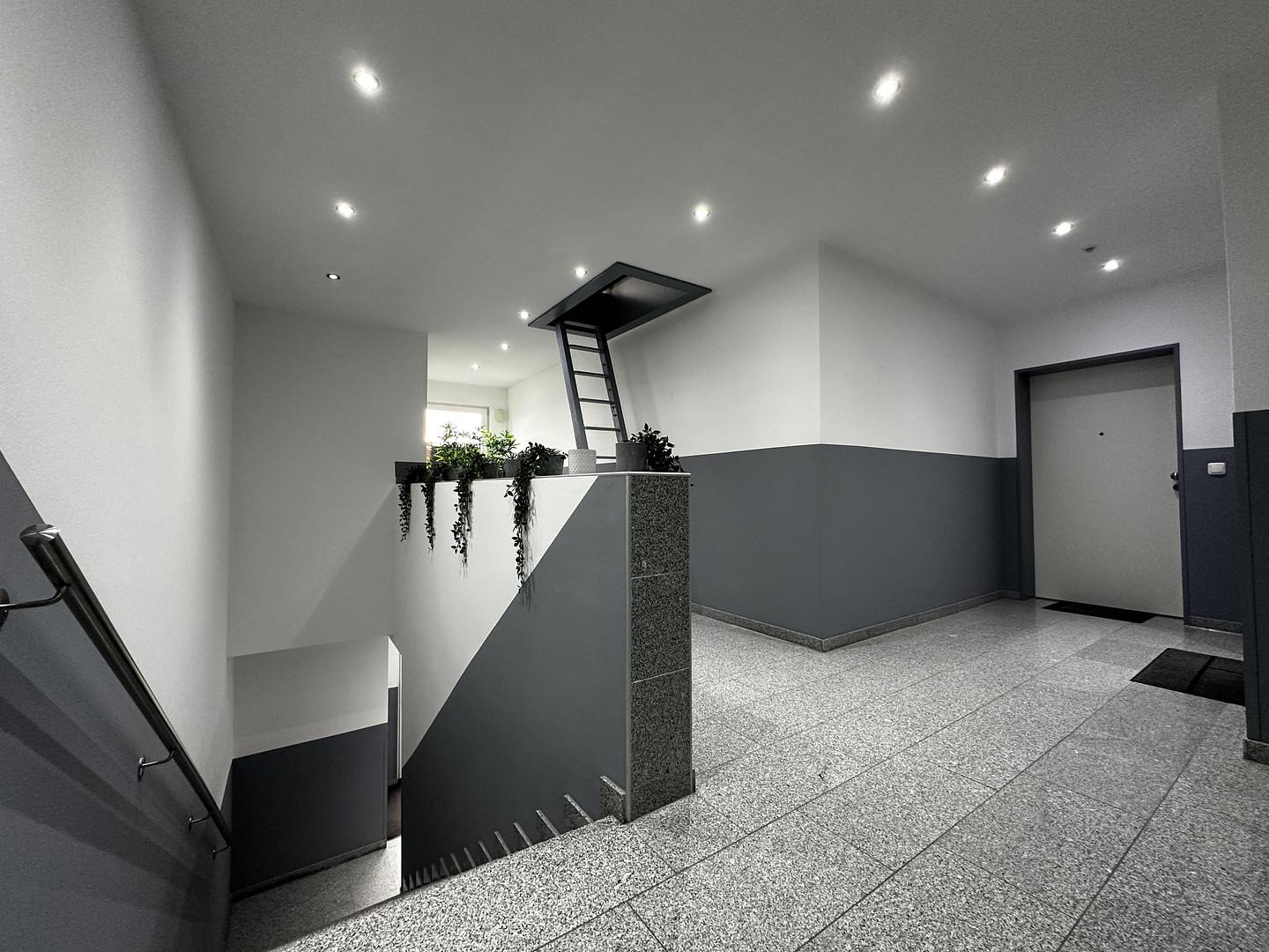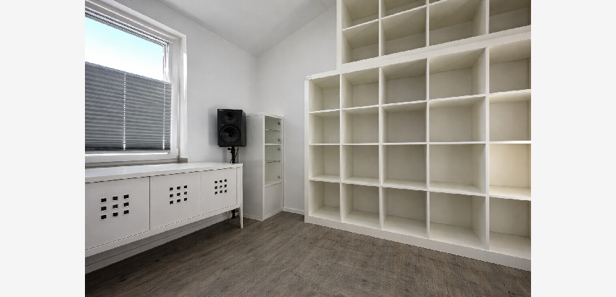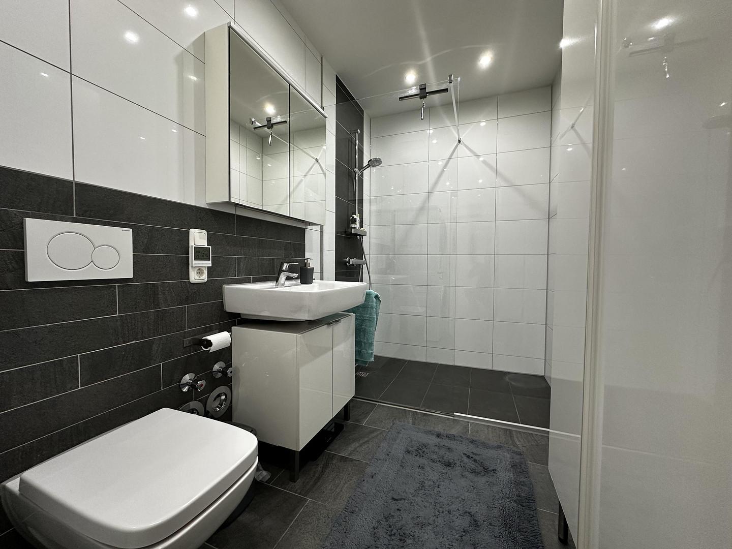Das gesamte Gebäude ist vollständig Smart-Home-gesteuert, sodass Beleuchtung und Fußbodenheizung zentral und separat per App bedient werden können.