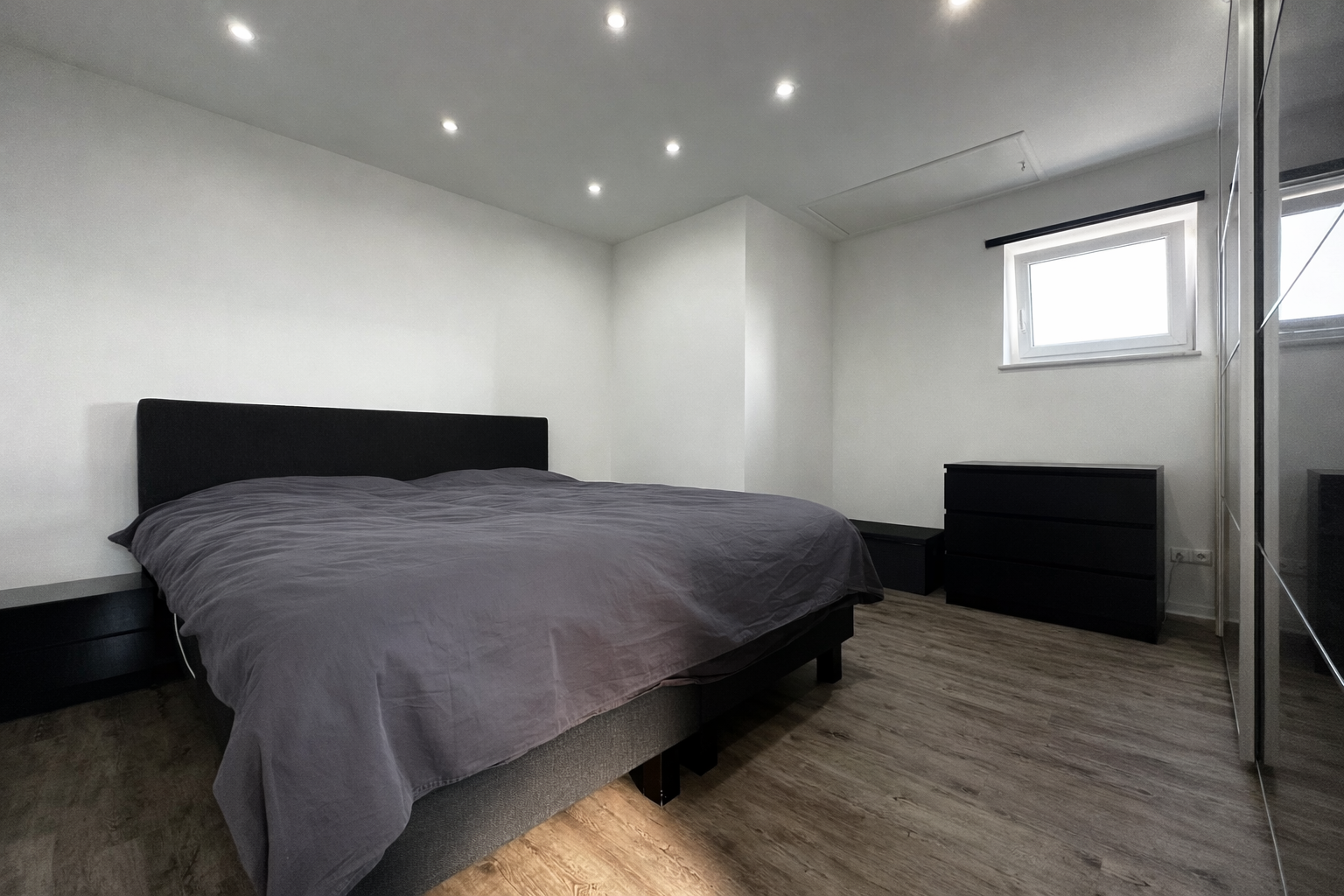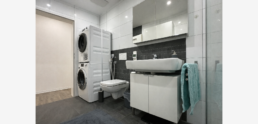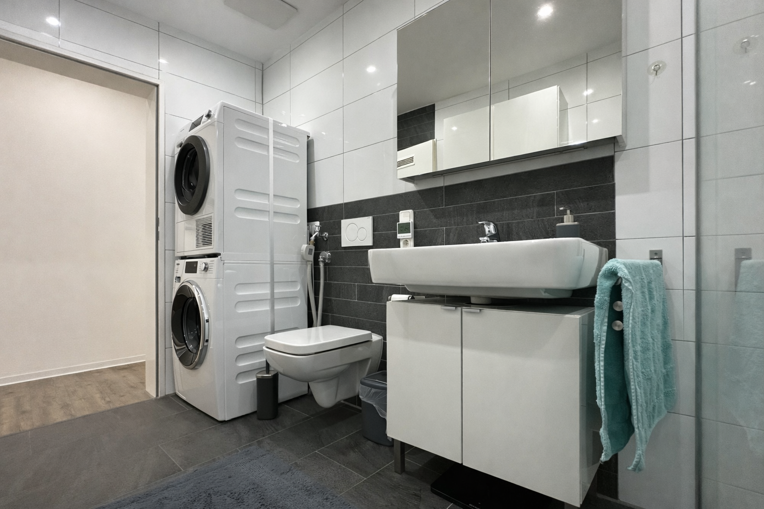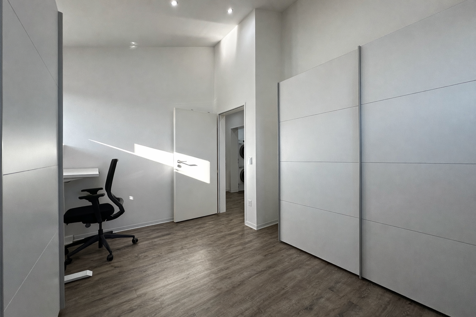 Das gesamte Gebäude ist vollständig Smart-Home-gesteuert, sodass Beleuchtung und Fußbodenheizung zentral und separat per App bedient werden können.