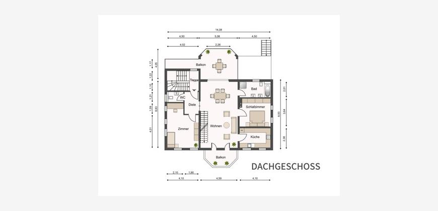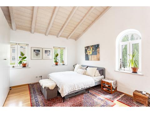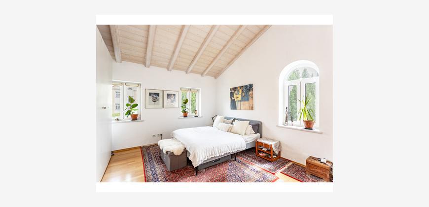 Die großzügige Wohnfläche von rund 355 m² verteilt sich auf vier Wohneinheiten mit insgesamt zwölf hellen, weitläufigen Räumen. Hohe Decken, lichtdurchflutete Fensterfronten und eine stilvolle Materialwahl schaffen ein repräsentatives und zugleich wohnliches Ambiente.
