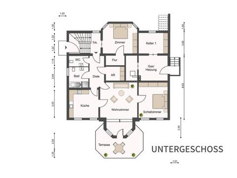 Im Untergeschoss stehen großzügige Kellerräume zur Verfügung, die zusätzlichen Stauraum oder vielfältige Nutzungsmöglichkeiten bieten – etwa als Hobbyraum, Werkstatt oder Weinkeller.