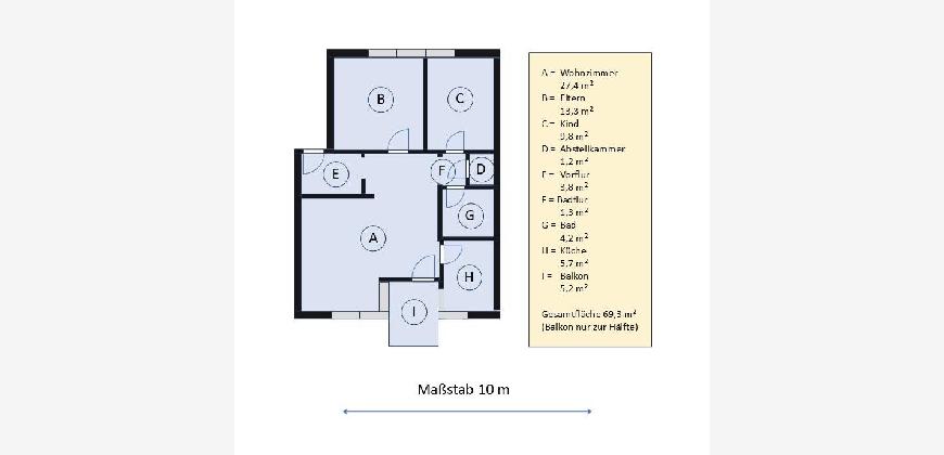 Die Wohnung wurde in wesentlichen Teilen frisch renoviert und wirkt sehr hell und freundlich.
