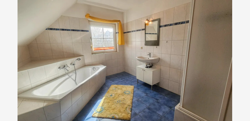 Dieses gepflegte Fertighaus aus dem Baujahr 2007 bietet eine großzügige Wohnfläche von ca. 170 m² und überzeugt durch eine helle, freundliche Wohnatmosphäre sowie eine äußerst zentrale Lage. Das Herzstück des Hauses ist das große, lichtdurchflutete Wohn- und Esszimmer mit bodentiefen Fenstern, die für viel Tageslicht sorgen und ein angenehmes Wohngefühl schaffen. Die Immobilie präsentiert sich insgesamt in einem sehr gepflegten Zustand und bietet viel Platz für Familien oder Paare mit großzügigem Platzbedarf.