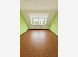 Alle Böden sind mit Laminat belegt. Im Badezimmer gibt es schöne weiße Fliesen, eine Badewanne und einen Waschmaschinen-Anschluss. Die Küche ist voll ausgestattet mit Kochherd mit Abzugshaube, Backofen, einem Kühlschrank...