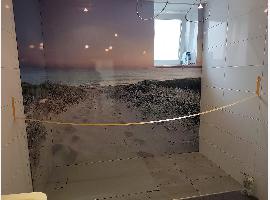 Eichenholz-Parkett, Fließen im Küchenbereich. Die Küche kann noch individuell gestaltet werden. Hochwertige Duschabtrennung in Echtglas mit Tür, Fußbodenheizung, elektrische Jalousie mit Zeitsteuerung, Anschluss für Kabelfernsehen etc. sind Teil der hochwertigen...