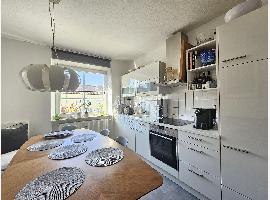 Die Wohnung kann mit einer hochwertigen Ausstattung überzeugen. Die offen gehaltene Einbauküche ermöglicht ständigen Kontakt mit Ihren Gästen. Neben ausreichend Ober- und Unterschränken beinhaltet diese einen Dunstabzug, eine Gefrier- und...