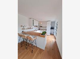 Die Wohnung zeichnet sich durch eine hochwertige Ausstattung mit Fußbodenheizung und Klimaanlage aus. Sowohl der offene Kamin als auch die mit weißem Holz verkleideten hohen Decken machen den Wohn-Essbereich zu...