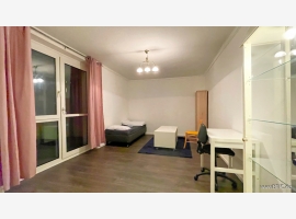 Rent a bright, fully furnished 3-room apartment on the 7th floor of a well-maintained residential building. The apartment is fully equipped and prepared for use as a 3-person shared flat (WG),...