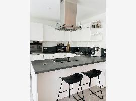 Die Wohnung kann mit einer hochwertigen Ausstattung überzeugen. Die offen gehaltene Einbauküche ermöglicht ständigen Kontakt mit Ihren Gästen. Neben ausreichend Ober- und Unterschränken beinhaltet diese einen Dunstabzug, eine Gefrier- und...